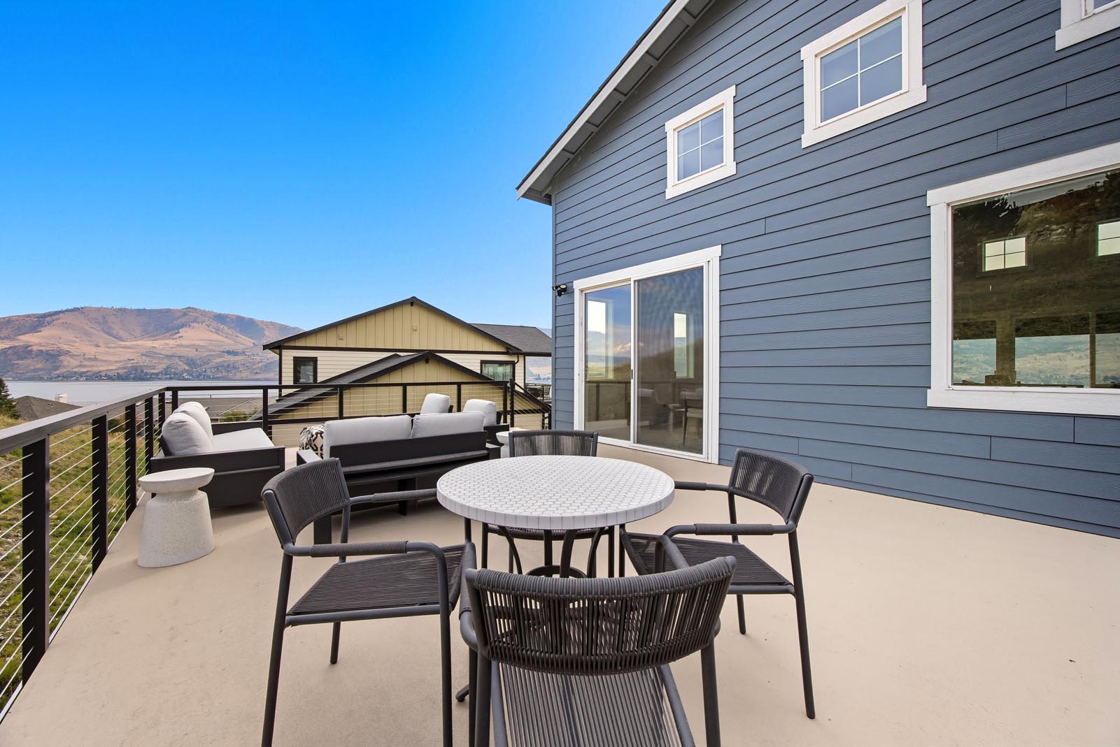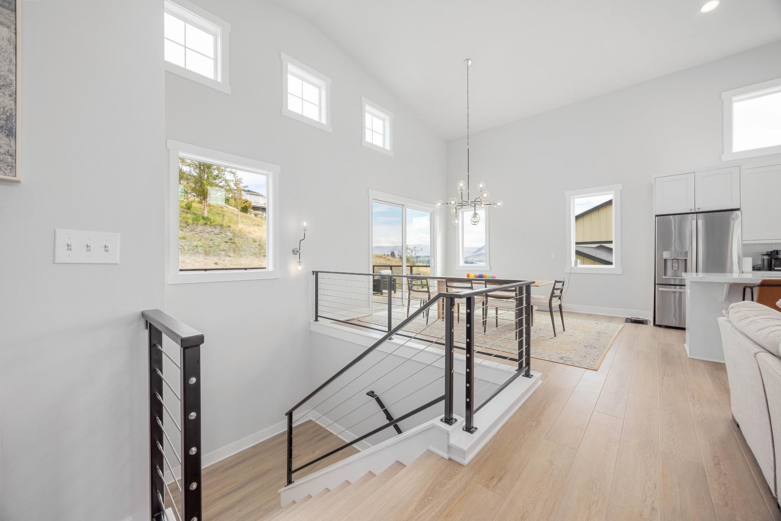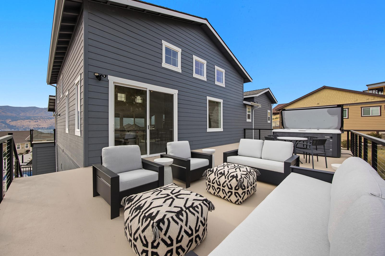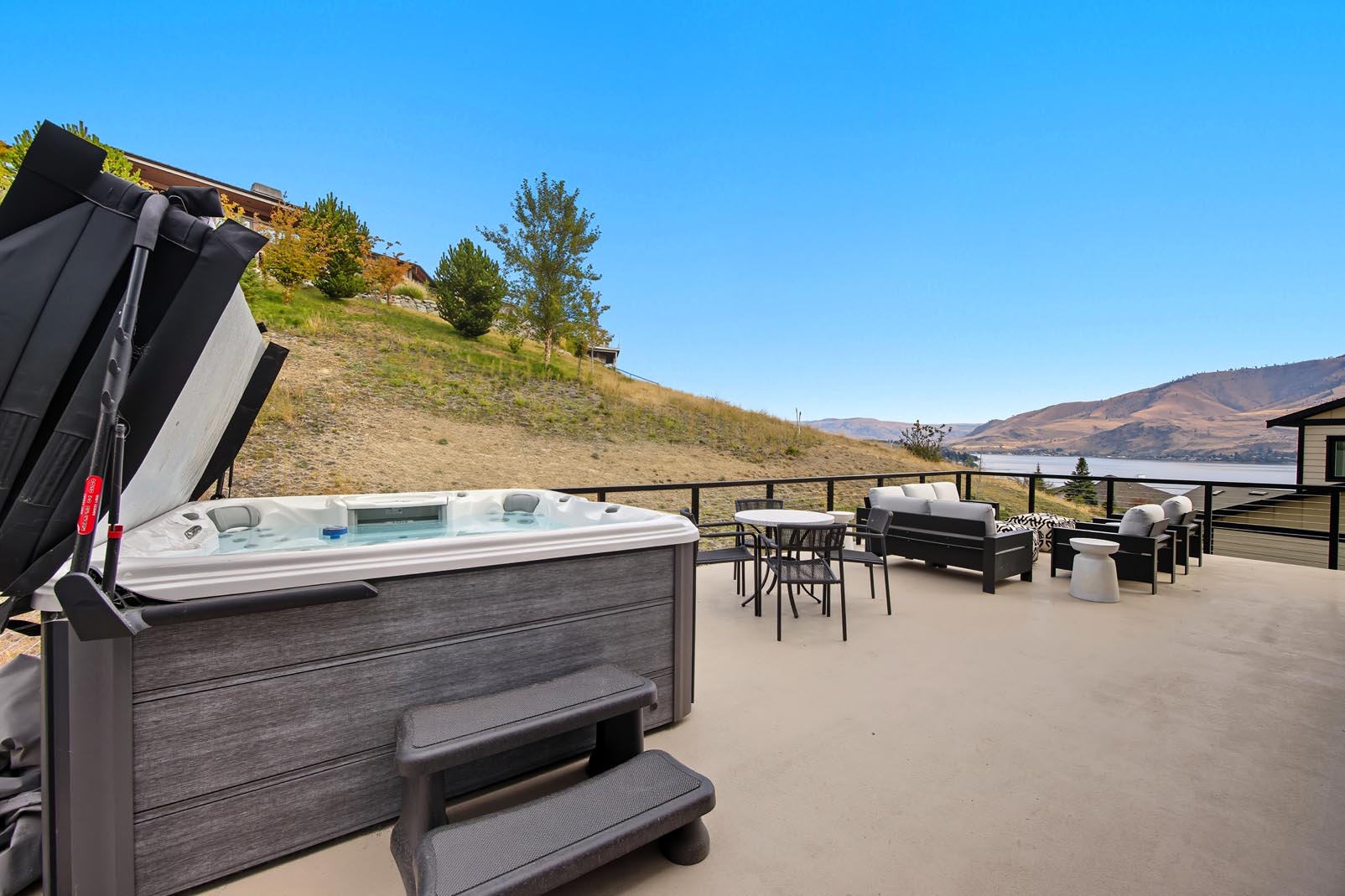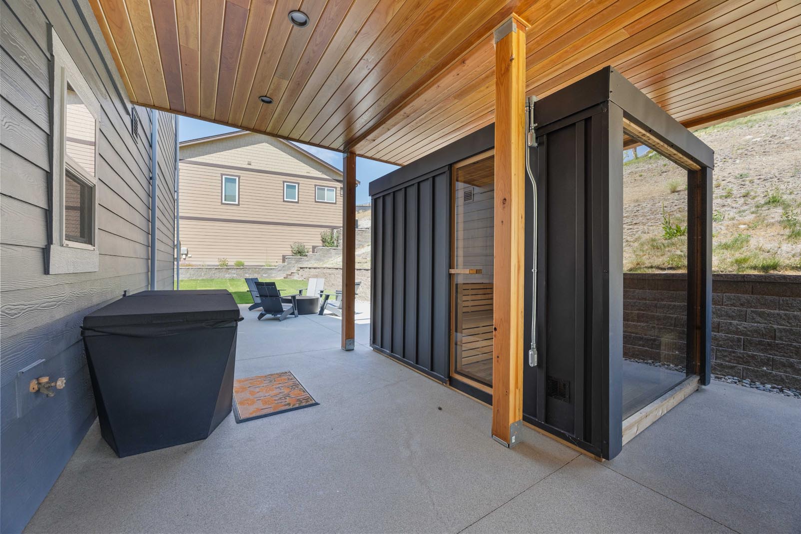 We expanded outdoor living with brand-new front and back decks, each featuring modern railings. The front deck was redesigned to open up panoramic views of the lake and beyond, complemented by large sliding doors that seamlessly connect the indoor living area to the outdoors. The back deck also received a spacious new sliding door, further enhancing the home’s indoor-outdoor connection. The back deck and patio were further enhanced with a hot tub, sauna, and cold plunge, creating a personal retreat designed for relaxation and wellness.