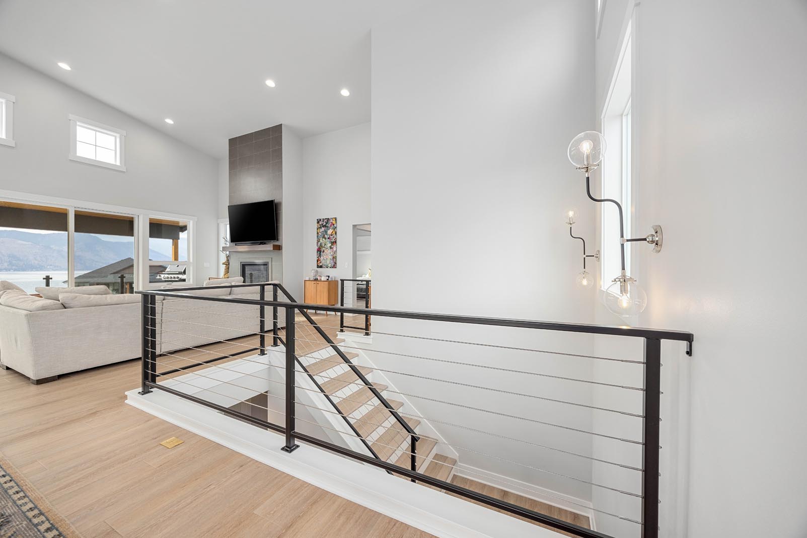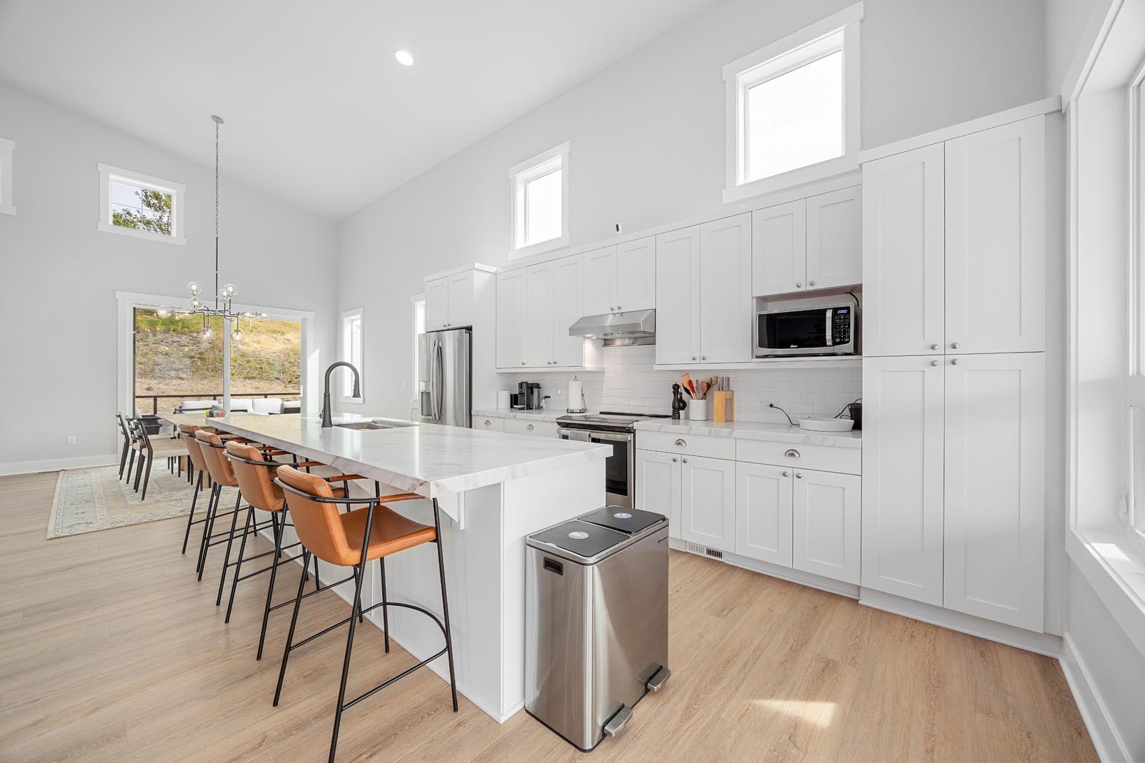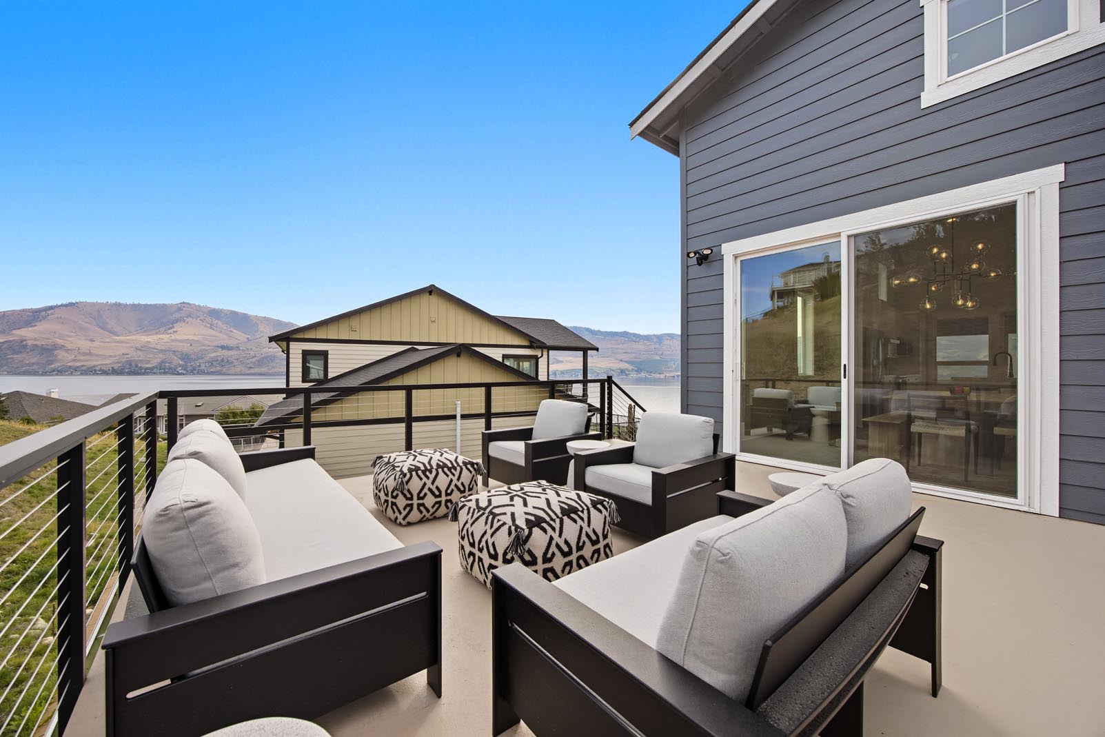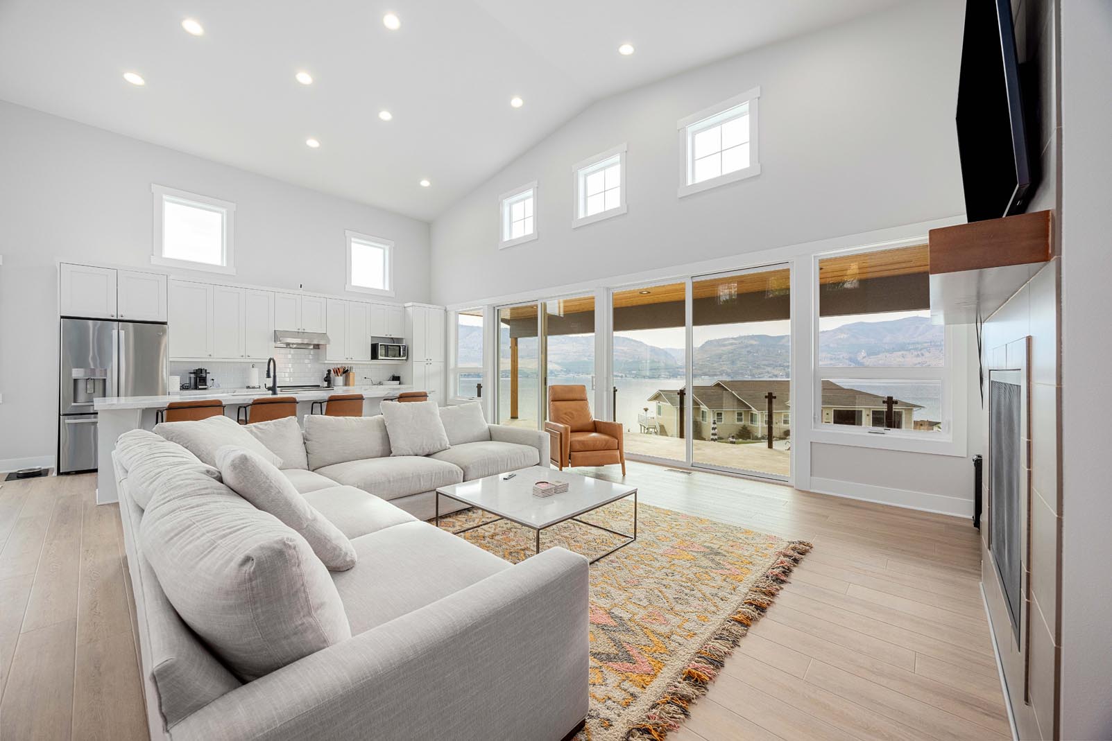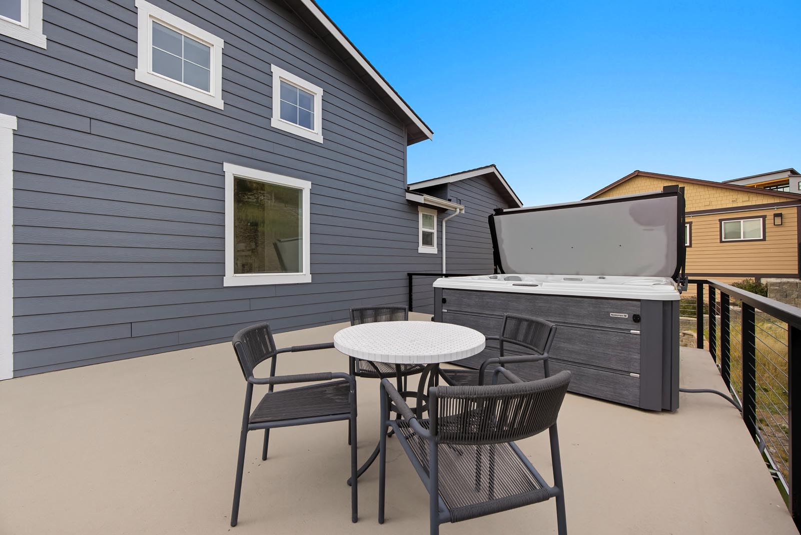 We expanded outdoor living with brand-new front and back decks, each featuring modern railings. The front deck was redesigned to open up panoramic views of the lake and beyond, complemented by large sliding doors that seamlessly connect the indoor living area to the outdoors. The back deck also received a spacious new sliding door, further enhancing the home’s indoor-outdoor connection. The back deck and patio were further enhanced with a hot tub, sauna, and cold plunge, creating a personal retreat designed for relaxation and wellness.