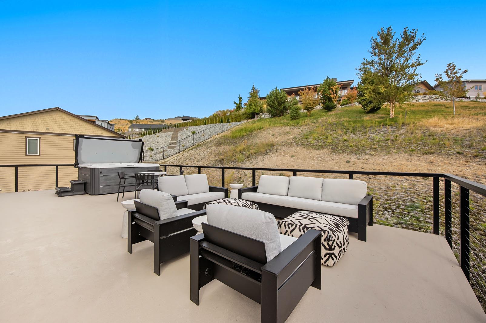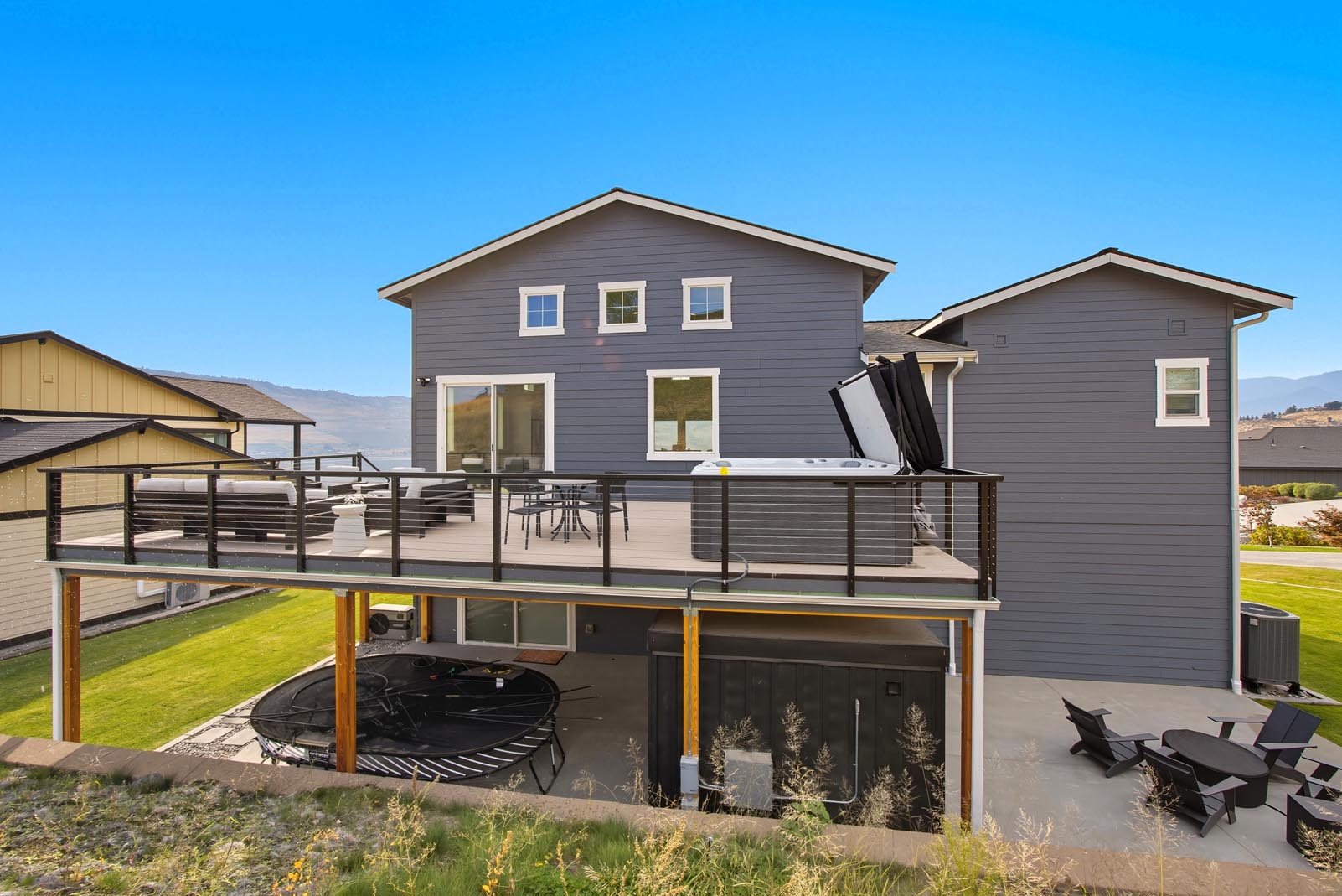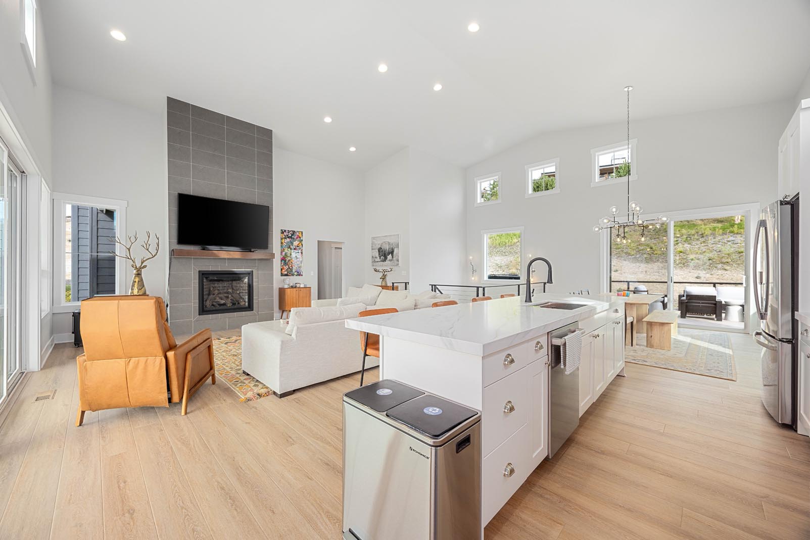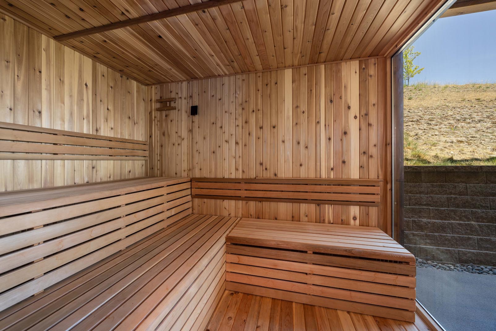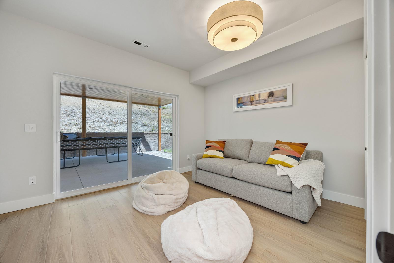 We expanded outdoor living with brand-new front and back decks, each featuring modern railings. The front deck was redesigned to open up panoramic views of the lake and beyond, complemented by large sliding doors that seamlessly connect the indoor living area to the outdoors. The back deck also received a spacious new sliding door, further enhancing the home’s indoor-outdoor connection. The back deck and patio were further enhanced with a hot tub, sauna, and cold plunge, creating a personal retreat designed for relaxation and wellness.