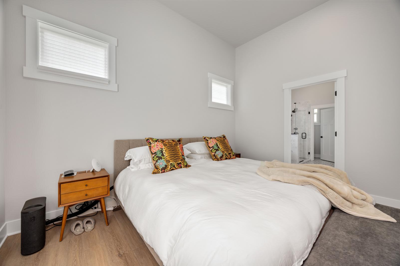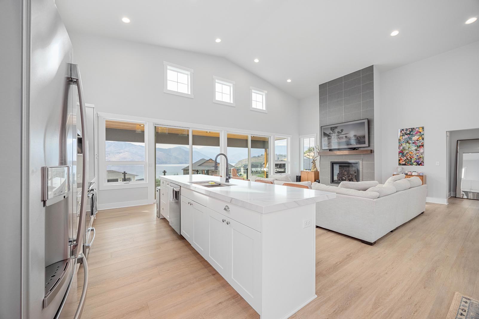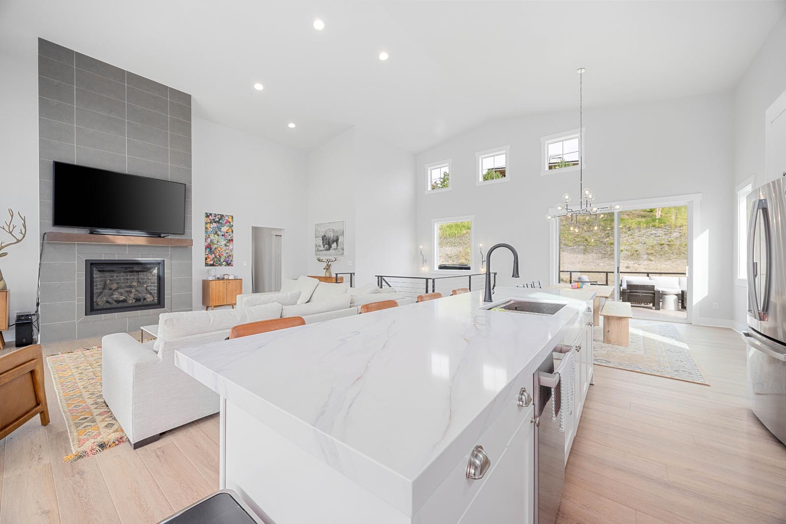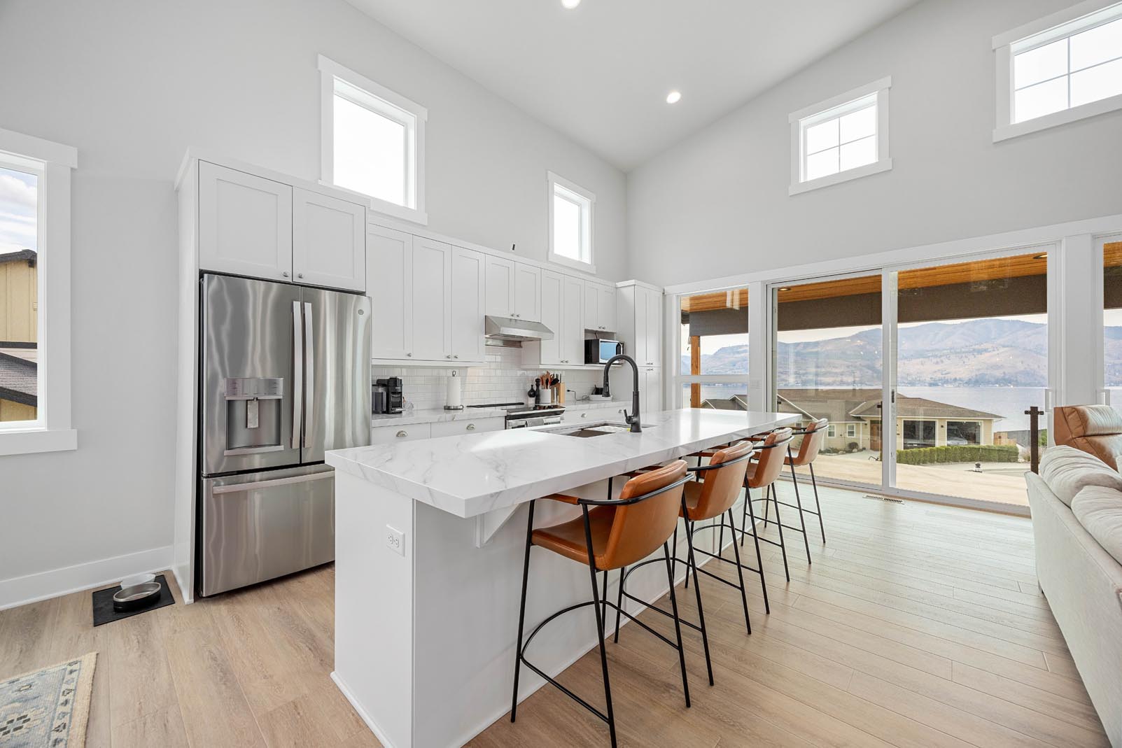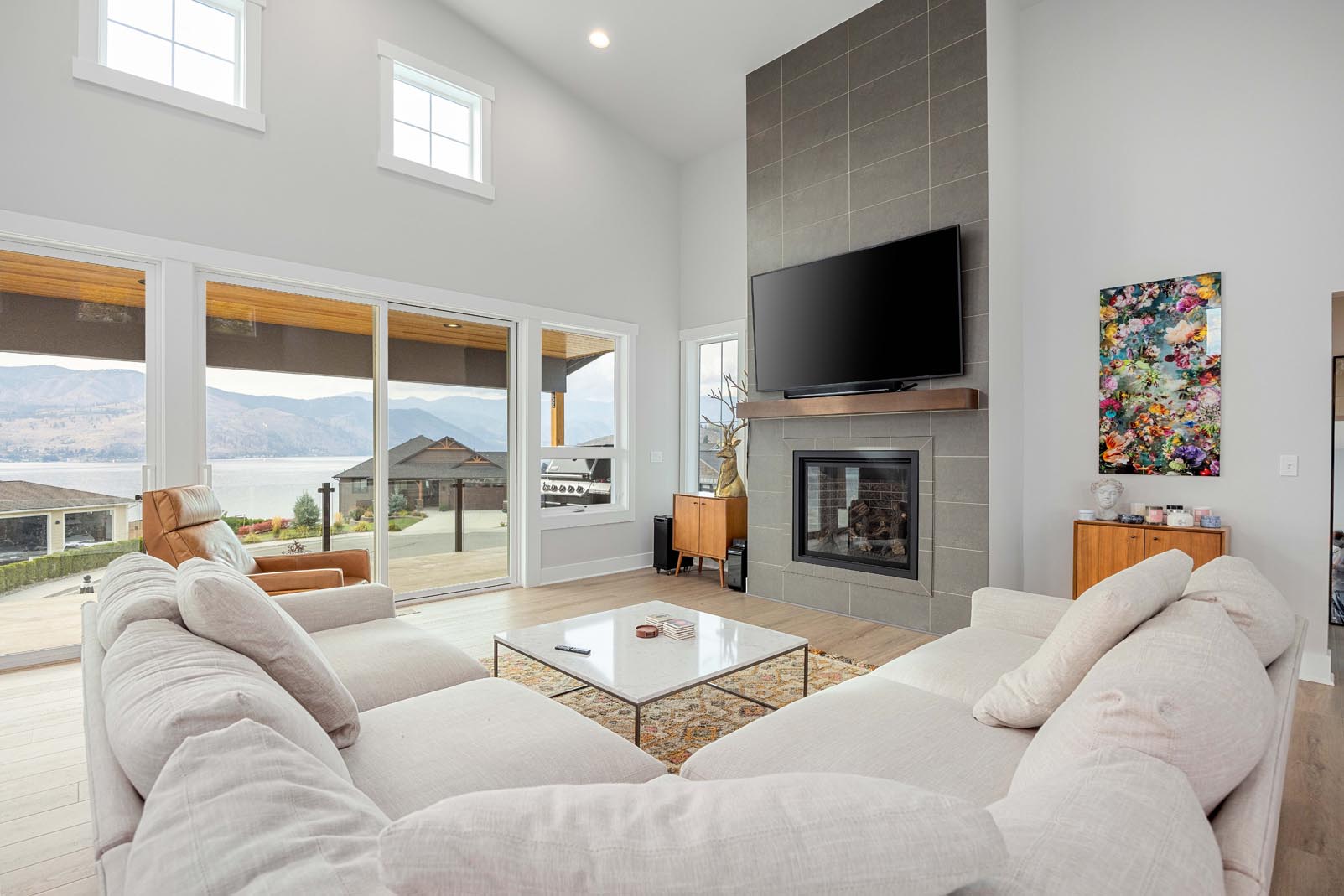 We expanded outdoor living with brand-new front and back decks, each featuring modern railings. The front deck was redesigned to open up panoramic views of the lake and beyond, complemented by large sliding doors that seamlessly connect the indoor living area to the outdoors. The back deck also received a spacious new sliding door, further enhancing the home’s indoor-outdoor connection. The back deck and patio were further enhanced with a hot tub, sauna, and cold plunge, creating a personal retreat designed for relaxation and wellness.